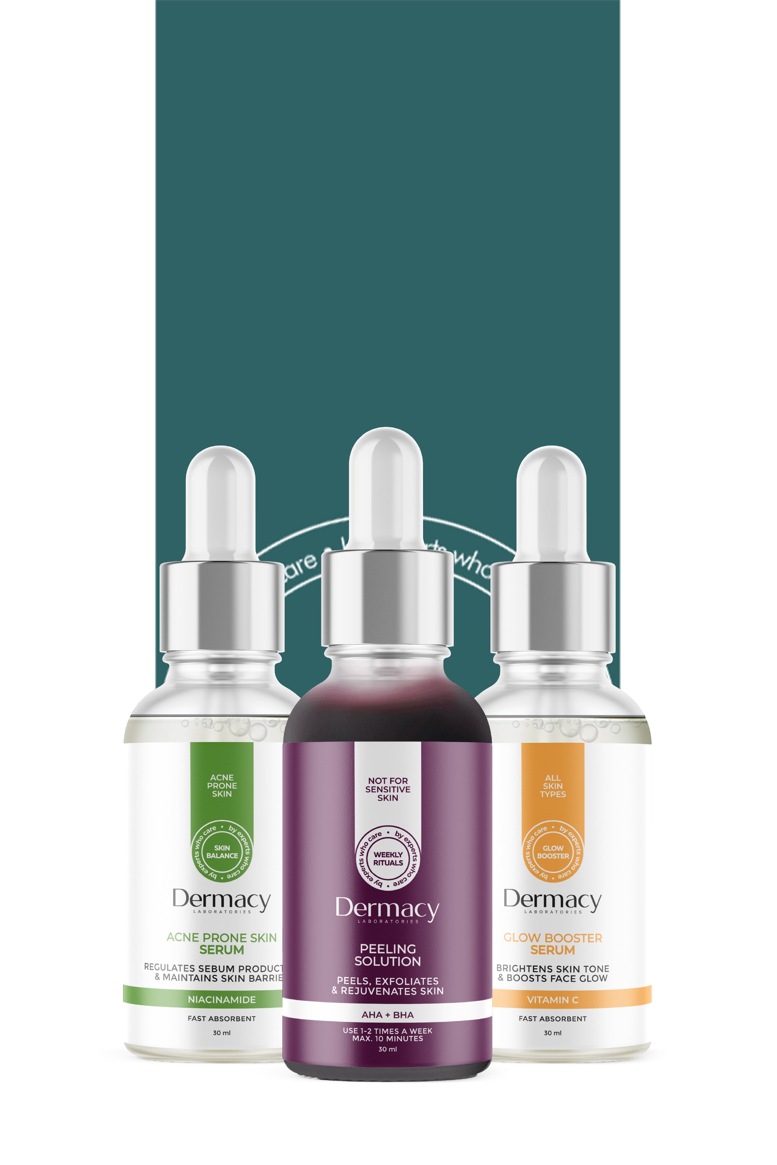 Start by using the Glow Booster Serum with Vitamin C in the day to give a natural glow with antioxidant sun damage protection. Use the Acne Prone Skin Serum at night for targeted acne reduction and regulating oil production.