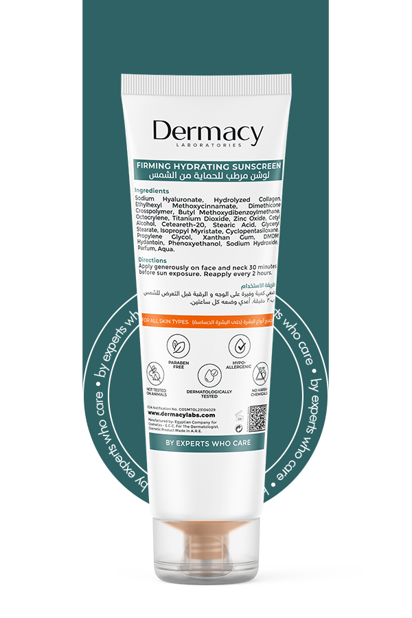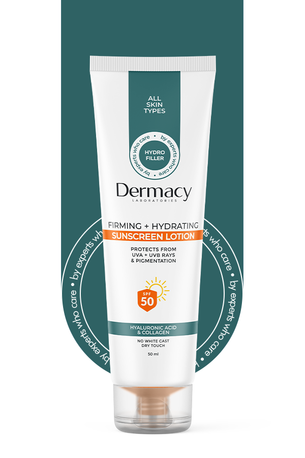 The HYDRO-FILLER Firming+ Hydrating Sunscreen Lotion is a broad spectrum sunscreen that shields your skin from UVA and UVB rays. At Dermacy Laboratories we believe in the power of combination. This sunscreen is a rich blend of Hyaluronic Acid & Collagen, and has a lightweight formula with no-white-cast solution that moisturizes the skin deeply and gives it the firmness it needs to look young and healthy.