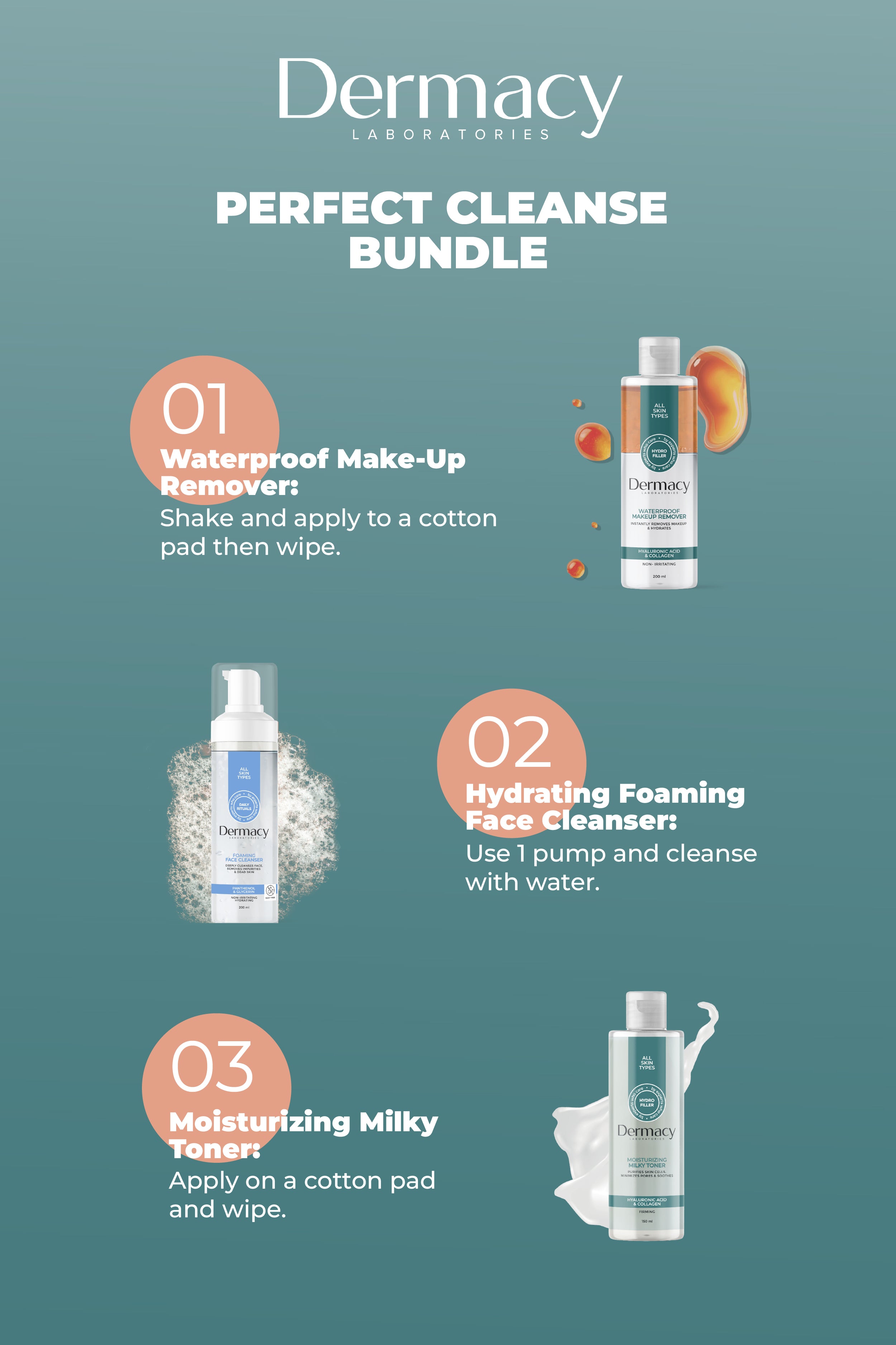 For a special price get our Perfect Cleanse Bundle, which includes our Waterproof Make-Up Remover, Foaming Face Cleanser and our Milky Toner.